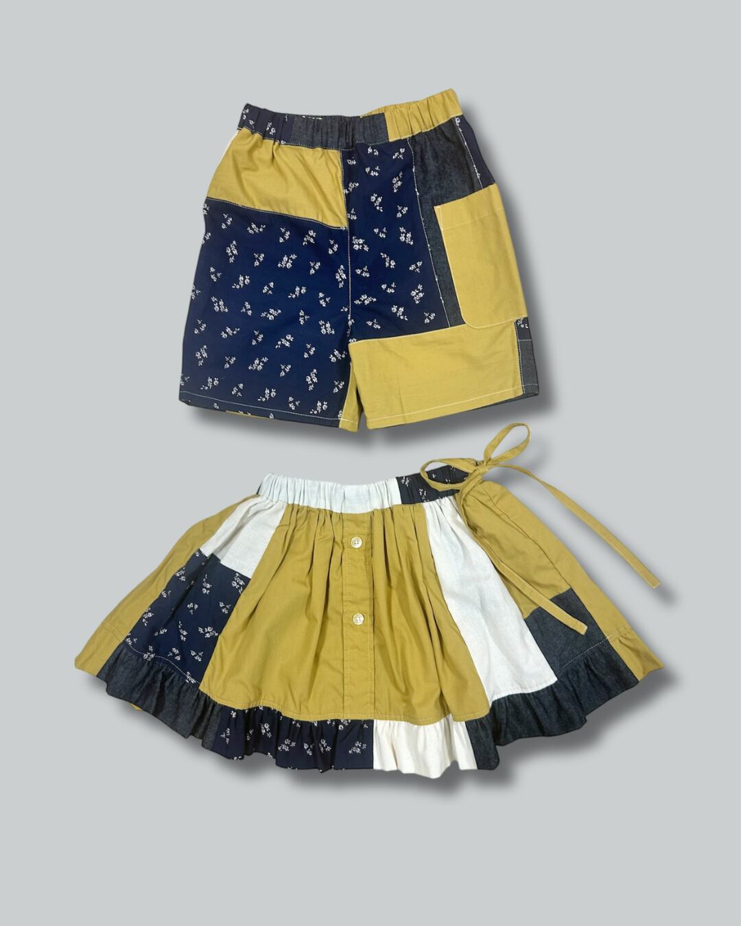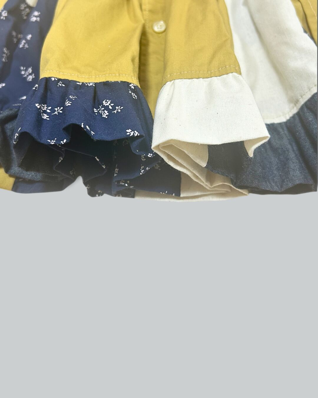 古着シャツ1枚+ハギレを組み合わせたフリルスカート。